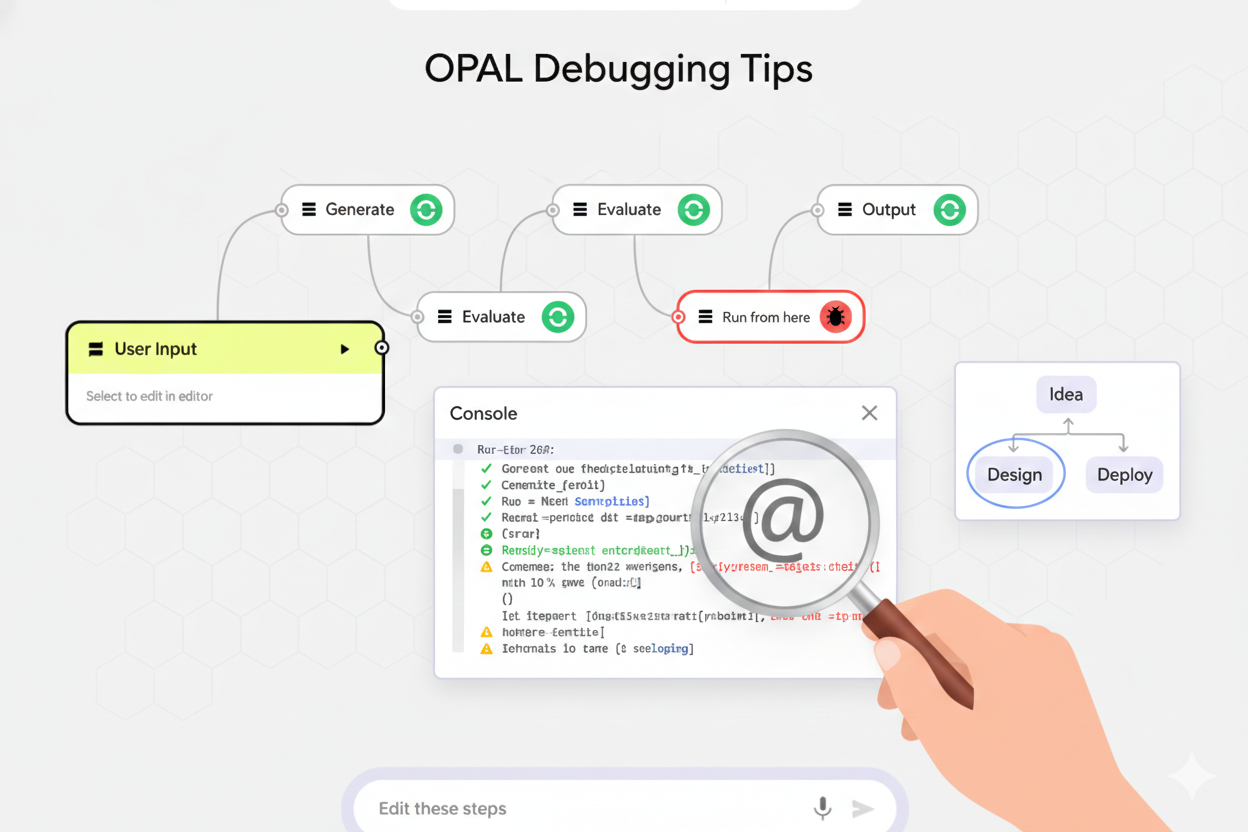 구글의 노코드 AI 에이전트 빌더인 **Opal(오팔)**을 사용하다 보면, 내가 원하는 대로 답변이 나오지 않거나 중간에 흐름이 끊겨 당황스러울 때가 있습니다. 처음부터 다시 실행하며 시간을 낭비하는 대신, 고수들이 사용하는 효율적인 디버깅 방법을 통해 에이전트의 완성도를 높여보세요.
