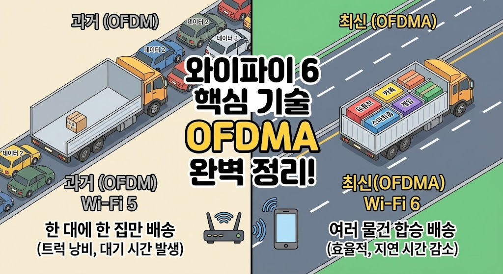 안녕하세요! 지난 포스팅에서 아이피타임 AX1500SR과 A2004S를 비교해 드리면서, 제가 **"OFDMA 기술 때문에 무조건 신형인 AX1500SR을 사셔야 한다"**고 강력하게 말씀드렸었죠.많은 분들이 이 낯선 용어에 대해 궁금해하셔서, 오늘은 이 OFDMA라는 기술이 도대체 무엇인지, 왜 중요한지 아주 쉽고 간단하게 풀어서 설명해 드리려고 합니다.어려운 공학 용어는 다 빼고, 핵심만 딱! 알려드릴게요. 1. OFDMA, 한 줄 요약!OFDMA (Orthogonal Frequency Division Multiple Access)는 와이파이 6(802.11ax)에서 처음 도입된 기술로, 와이파이의 효율성을 극대화하여 여러 기기가 동시에 접속해도 느려지지 않게 만드는 기술입니다.딱 한 단어로 비유하자..