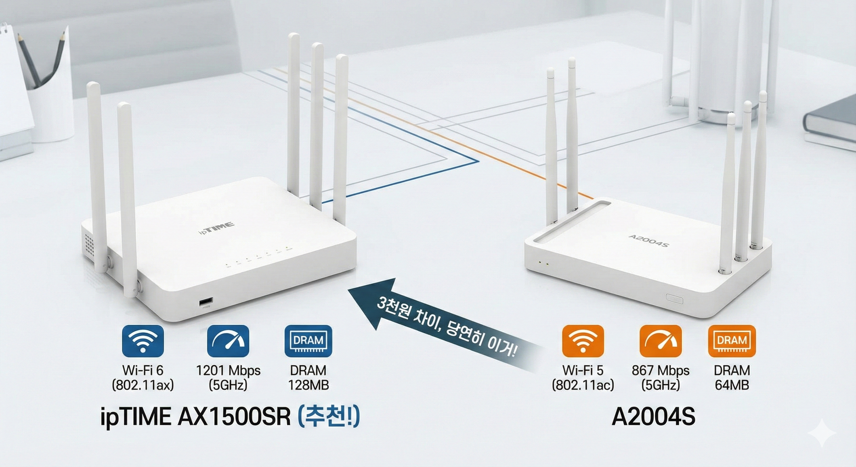 [ipTIME 공유기 비교] AX1500SR vs A2004S, 3천원 차이면 '이것' 사세요! (가성비 끝판왕 종결)