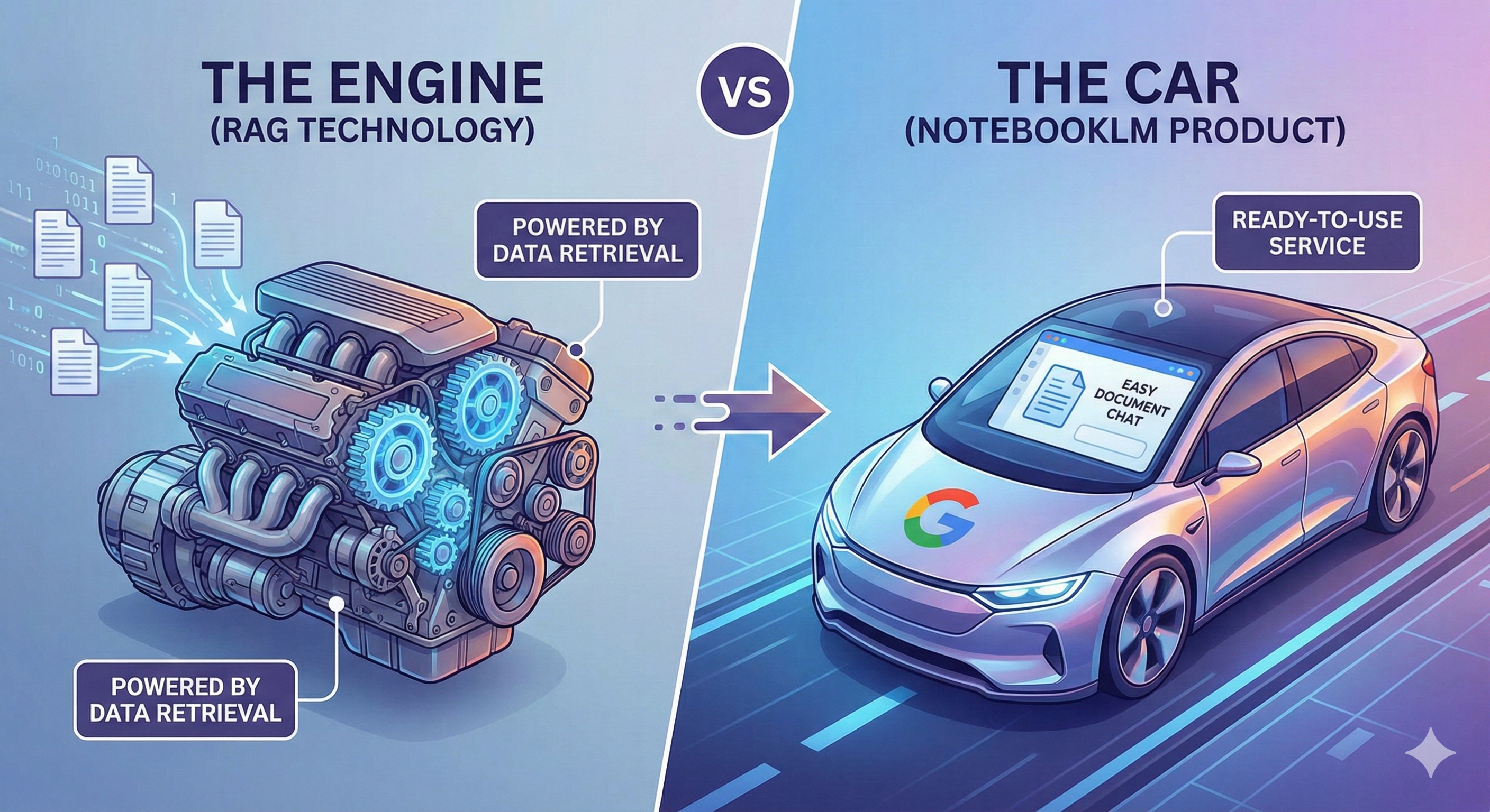 안녕하세요. 최근 AI 기술이 발전하면서 새로운 용어들이 쏟아져 나오고 있습니다.특히 RAG(검색 증강 생성) 기술이 뜨면서, 구글의 인기 서비스인 NotebookLM과 무엇이 다른지 궁금해하시는 분들이 많습니다."둘 다 내 문서를 보고 대답해 주는 건 똑같은 거 아닌가?"결론부터 말씀드리면, 둘은 다릅니다. 하지만 떼려야 뗄 수 없는 관계죠. 오늘은 이 두 가지의 차이점을 비전공자도 이해하기 쉽게 딱 정리해 드립니다.1. 30초 요약: 엔진 vs 자동차이 둘의 관계는 **'자동차 엔진'**과 **'완성된 자동차'**의 관계와 같습니다.RAG (Retrieval-Augmented Generation): 기술 그 자체입니다. (엔진)AI가 외부 데이터를 검색해서 답변하게 만드는 방법론이자 기술입니다.Goo..